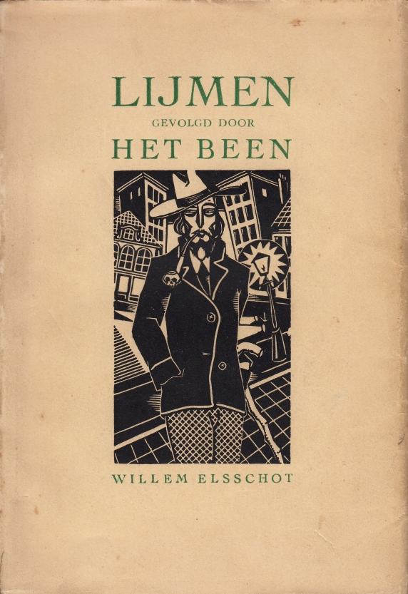 14. ELSSCHOT, Willem Lijmen. Versierd door Henri van Straten. Amsterdam, Van Kampen, [1938]. Linnen. 254 p. [2e druk]. Voorste schutblad verwijderd. Wat roest. Boekhandelsetiketje (‘Kolff Soerabaia’) op binnenzijde voorplat.