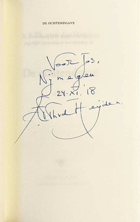 * Exemplaar met gesigneerde opdracht van de auteur: ‘Voor Jos,/ Nijmegen/ 24.XI. ’18/ A.F.Th.vd Heijden’.