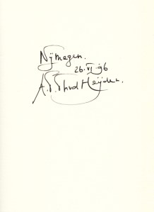 * Exemplaar met opdracht: ‘Voor Jos/ Nijmegen/ 24.XI.’18/ A.F.Th.vdHeijden’. Jaarwisselingsgeschenk 1988/1989. Niet in de handel.