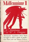 17. DWIGGINS, W.A. Millennium 1. (‘A Melodrama’, aldus het stofomslag). New York, Alfred A. Knopf, 1945. Linnen met stofomslag. (26), 104 p. Met in blauw gedrukte vignetten (getekend door Dwiggins) die alle aan het begin van het boek zijn geplaatst. Gezet uit Dwiggins’ eigen lettertype Linotype Electra. Ook de typografische vormgeving is van W.A. Dwiggins. Gedrukt in een oplage van 1750 exemplaren. 1e druk. Stofomslag een beetje versleten.