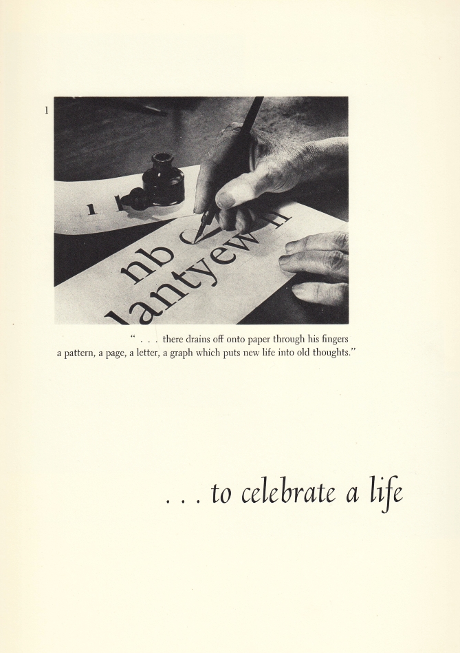 Dwiggins was een groot illustrator, letterontwerper en typograaf, en het is een genoegen het typografisch bewustzijn in allerlei aspecten van het boek te zien krullen en kabbelen. Zo is het titelwoord cursief gezet, maar het bijbehorende nummer niet. En je denkt misschien dat dit een deel 1 is, maar de 1 betekent ‘eerste millennium’. En de lezer wordt door de uitgever op het stofomslag aangesproken op het gebruikte papier. En dan heb ik het hele toneelstuk nog niet eens gelezen. Als er in deze nieuwsbrief één boek staat met betekenis voor het nageslacht!