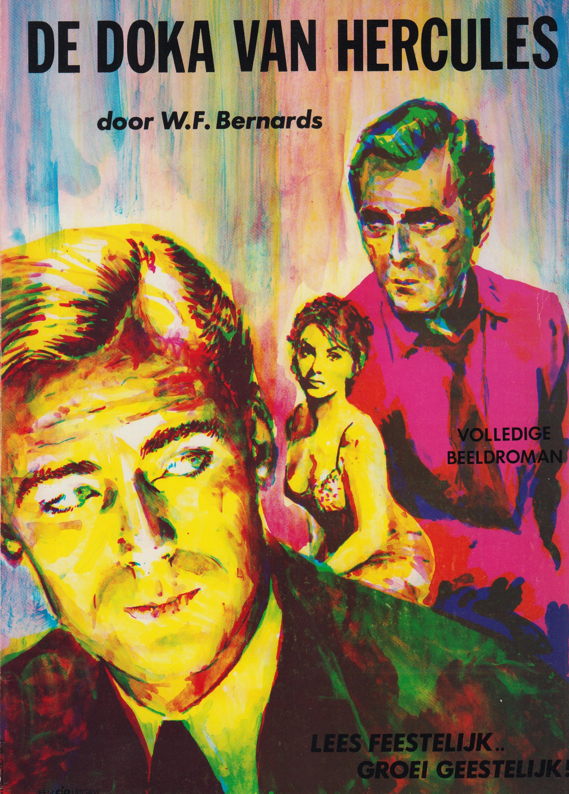 16. (HERMANS, W.F.). BERNARDS, W.F. De doka van Hercules. Volledige beeldroman. (Met originele persberichten). (Amsterdam, Cultureel Jongeren Paspoort, 1981). Garenloos. (32) p. 1e druk. Binnenzijde vooromslag deels verkleurd wegens inliggend knipsel (zie noot)