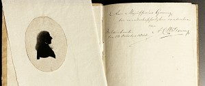 * Met op het eerste schutblad een handgeschreven opdracht van de dichter (1767-1840): ‘Aan Mejuffrouw Greving,/ ten vriendschappelijken aandenken/ van/ (handtekening)/ Wildenborch/ den 13 October 1832’. Op een los inliggend vroeg 19e-eeuws blad papier is een getekend silhouetje geplakt van een man met lang haar en een witte strik, misschien wat ouder dan het boek. Staring?