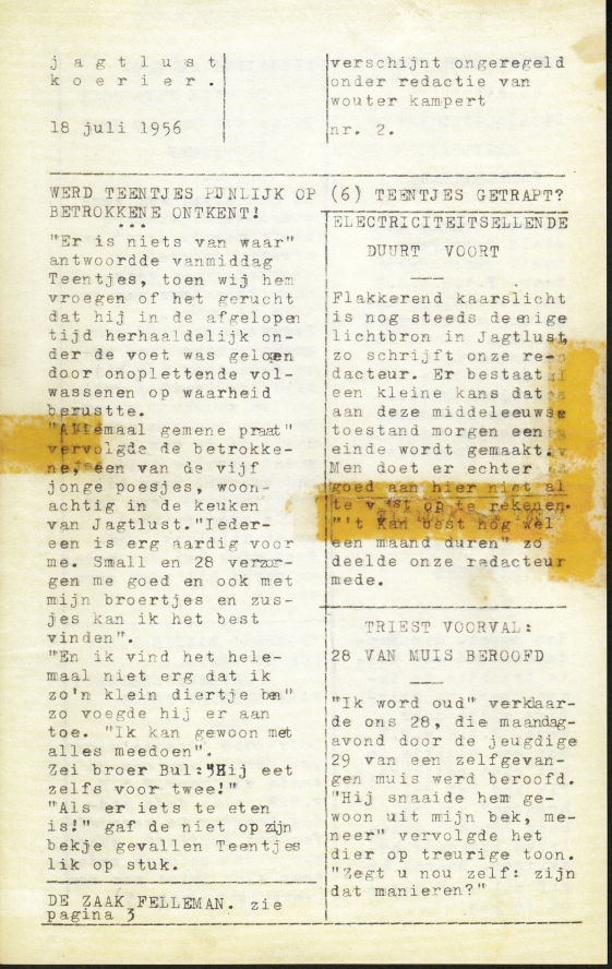 Gouden snor en cryptostructuren! Eertijts gheschreven schijnsel van onbetreden eenzaamheid. Een oud-en-nieuwerwets gevarieerde nieuwsbrief, waarin de koudblauwe krekel en rekkelijke Sneekse Jelle aan de slanke elegantie van Van Krimpens Lutetia voorafgaan en – bijeen het hoogere en het lagere – de wolf in ’t schaapsvel direct de moord in het oceaanstomergelijke NIR-gebouw volgt.