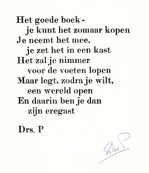 10. DRS. P e.a. Gedicht van de dag. (Gesigneerd door alle tien de auteurs). (Amsterdam, Stichting Drukhuis, 1978). Ingenaaid. Met de hand gezet uit diverse corpsen en gedrukt op diverse soorten papier in een oplage van 150 exemplaren. Ondanks de oplage: zeldzaam!