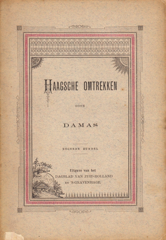30. DAMAS (= Frederik van HOGENDORP) Haagsche omtrekken. Negende bundel. Den Haag, Dagblad van Zuid-Holland en ’s Gravenhage, (1889). Ingenaaid. 140 p. 1e druk. Klein hapje uit voorzijde omslag.