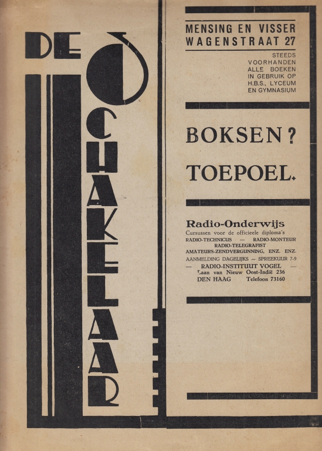 36. (COUPERUS, Louis) De Schakelaar. Orgaan van Haagsche instellingen voor voorbereidend hooger- en middelbaar onderwijs. Jaargang V nr. 20, 27 juni 1931. Louis Couperus-nummer. Den Haag, Drukkerij ‘Bevedeem’, 1931. 32 x 24 cm. Geniet. 24 p. Met een rondschrijven ‘Aan de leden van het Genootschap Louis Couperus’, geplakt op de binnenzijde van het vooromslag.