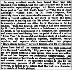 * Bekijk voor uw plezier de recensie van Eline Vere in het Britse tijdschrift The Queen van 19 maart 1892 (een klik vergroot alle plaatjes in onze nieuwsbrieven):