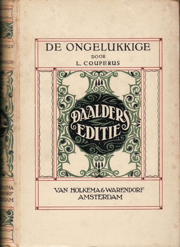 28. COUPERUS, Louis De ongelukkige. Amsterdam, Van Holkema & Warendorf, [1915]. ‘Daalders Editie’ – de grotere versie. Linnen (ontwerp Jac. Nuiver). (4), 300 p. 1e druk. Iets scheef, rug verkleurd, verder mooi.