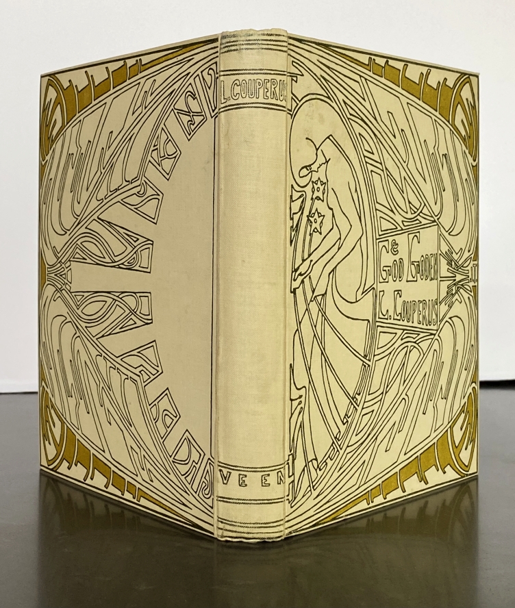 17. COUPERUS, Louis God en Goden. Amsterdam, Veen, [1903]. Linnen (ontwerp Jan Toorop). (4), 240 p. 1e druk. Opvallend mooi exemplaar: gaaf, vrijwel zonder roest en zonder inscripties.