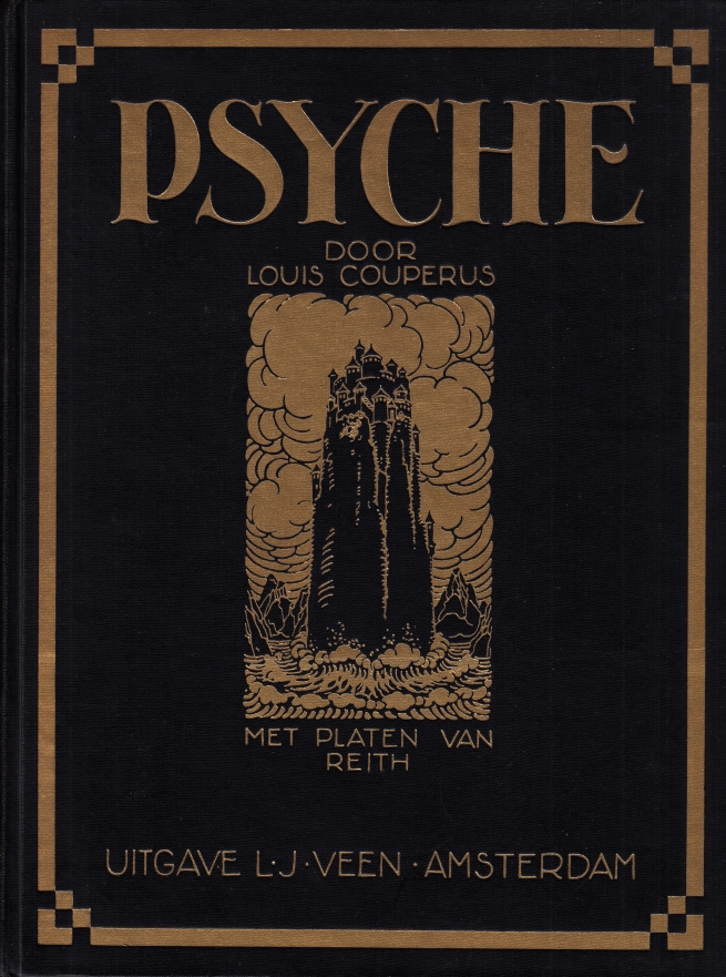 37. COUPERUS, Louis Psyche. Met platen van B. Reith. Amsterdam, Veen, [1927]. 28 x 21 cm. 4to. Verguld linnen [bandontwerp Bernard Reith]. 160 p. Met illustraties op kunstdrukpapier. 8e druk. Achterop wat vlekjes, sneden iets roestig, van binnen heel mooi exemplaar.