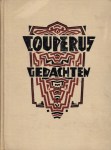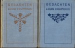 14. COUPERUS, Louis Gedachten. Verzameld door Elisabeth Couperus. Amsterdam, Veen, [1924]. Wit linnen met art-deco-opdruk in donkerrood en zwart. 256 p. Bruin bedrukte schutbladen. Achterin 9 pagina’s advertenties. Niet ingevuld.
