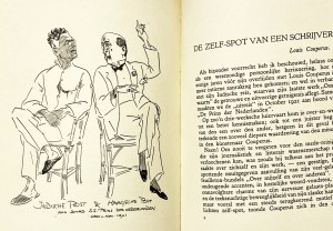 54. (COUPERUS, Louis). FEITH, Jan ‘De zelf-spot van een schrijver. Louis Couperus’. In: Voorbijgangers. Met teekeningen van Willy Sluiter. Amsterdam, Scheltens & Giltay, [1925]. 24 x 17 cm. Halflinnen. (4), 268 p. 1e druk. Net exemplaar.