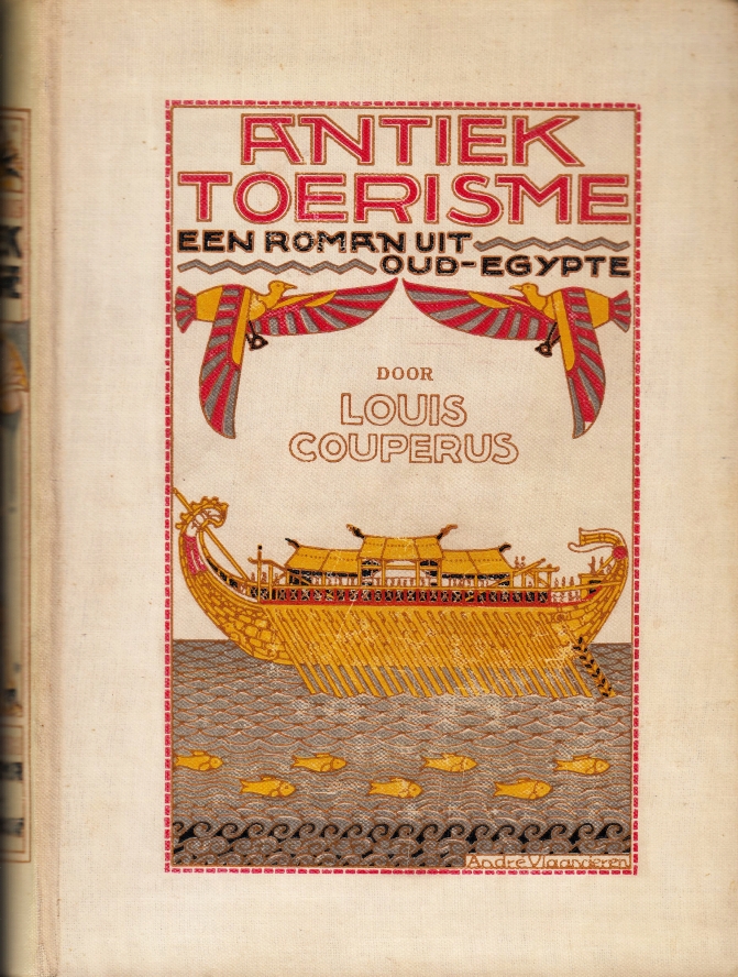 1. COUPERUS, Louis Antiek toerisme. Roman uit Oud-Egypte. Amsterdam, Van Holkema & Warendorf, 1917. Gedecoreerd linnen met art-deco afbeelding van een grote Nijlboot (ontwerp André Vlaanderen). Achterop boekbindersmerk van J. Brandt & Zonen. 224 p. 2e druk. Rug verkleurd en met een klein scheurtje. Wat roest voor- en achterin. Merkje van boekhandel F.C. Koens aan de Haagse Bankastraat. Naam voorin: S.M.S. de Ranitz.