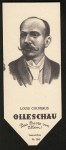 * Olleschau, nu Olšany, is een plaats diep in Tsjechië, vlakbij Schönberg, dat nu Šumperk heet. Uit een omvangrijke serie boekenleggers die reclame maakten voor Olleschau-papier met portretten van internationale schrijvers en andere bekende figuren. Achterop Couperus’ leven en werk in negen beknopte regels.