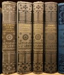 8. COUPERUS, Louis De boeken der kleine zielen. (I. De kleine zielen; II. Het late leven; III. Zielenschemering; IV. Het heilige weten). Amsterdam, Veen, [1901-1903]. 4 delen. Linnen (bandontwerp Theo Neuhuys). (4), 268, (4), 252; (4), 180, (4), 184; (4), 192, (4), 216; (4), 220, (4), 224 p. 1e druk. In deze set is De kleine zielen opnieuw in de band gezet, waardoor er een wat rubbelige, maar stevige achterkneep is ontstaan. Deel I en IV wat scheefgelezen.