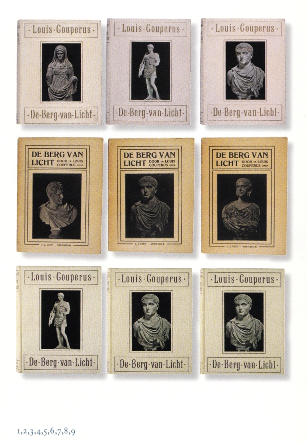 5. COUPERUS, Louis De berg van licht. Amsterdam, L.J. Veen, [1905-1906]. Drie delen in één band. Linnen. (4), 240; (4), 232; (4), 268 p. Geïllustreerd. 1e druk. Iets schuingelezen. Op de rug enkele kleine vlekjes. Exlibris van Gerhard J. Lugard.