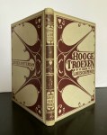 21. COUPERUS, Louis Hooge troeven. Amsterdam, Veen, [1908]. Linnen (bandontwerp H.P. Berlage; zelfde ontwerp als voor 1e druk, maar dan in zwart en wit op grijs). (4), 124 p. 2e druk. Wat scheefgelezen, paar krasjes in de ‘H’ op het voorplat.