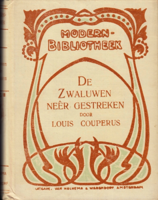 46. COUPERUS, Louis De zwaluwen neêr gestreken… Amsterdam, Van Holkema & Warendorf, [1911]. Linnen [band- en titelontwerp André Vlaanderen]. 222 (= 220) p. 1e druk. Heel net exemplaar zonder roest.