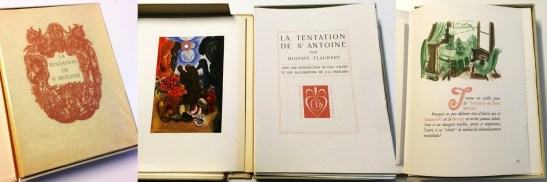 8 a. FLAUBERT, Gustave La Tentation de St Antoine. Avec une introduction de Paul Valéry et des illustrations de J.-G. Daragnès. [Paris], Imprimerie Daragnès, 1942. 33 x 24 cm. Origineel omslag. In gevouwen bladen, niet gebonden, zoals uitgegeven. In originele doos. (28), 228 p. Niet afgesneden. Illustraties in kleuren en vignetten van Daragnès. Gedrukt in roodbruin en zwart op Vélin de Rives in 1480 genummerde exemplaren. Doos op de rug gebarsten, verder in zeer goede conditie.