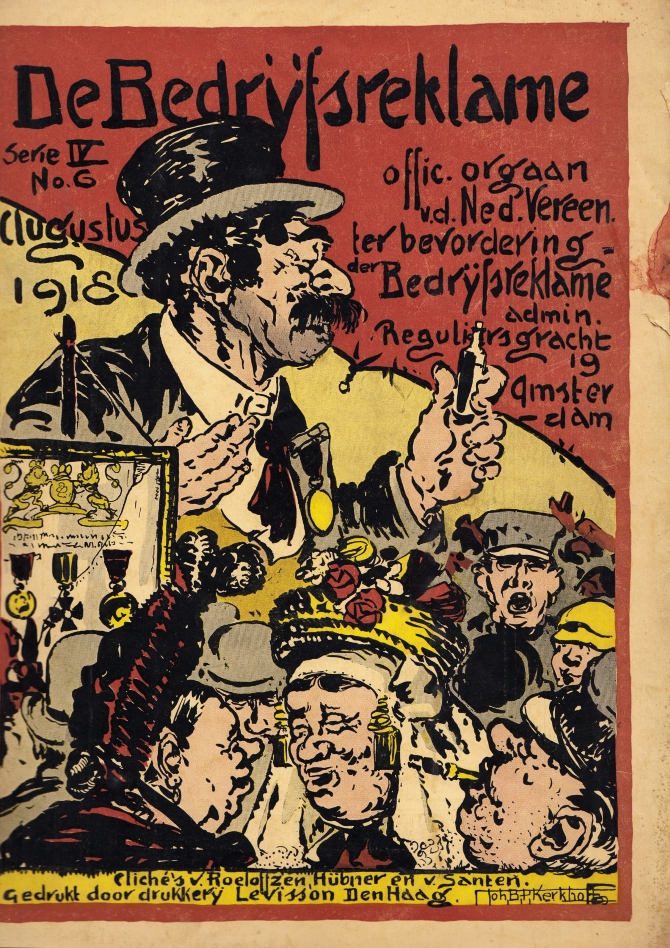 * Dit reclametijdschrift gaf per nummer speciale aandacht aan één kunstenaar, in dit geval de Rotterdamse tekenaar Joh.B.P. Kerkhoff (1876-1941), die dan ook voor de omslagtekening zorg mocht dragen. En er zijn enkele van zijn karikaturen opgenomen, onder andere de bekende spotprent op Couperus die afkomstig is uit, eveneens, een reclameboek uit 1918, Kleeding en de Man. Ook met aandacht voor het overlijden van Albert Hahn en voor de landschapsplaatjes van Wenckebach en Voerman. En vele mooi getekende advertenties.