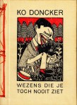 14. DONCKER, Jacobus Wezens die je toch nooit ziet. Amsterdam, Frans Buffa, 1927. Linnen met sierbinding van oranje raffia. (128) p. Gedrukt in rood en zwart in 100 genummerde exemplaren. 1e druk.
