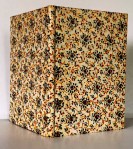 * Duitstalige dichtbundel van de in Amsterdam residerende Zwitserse chirurg en grootschalig kunstverzamelaar. De gedichten zijn geïnspireerd door de Xenien van Goethe, tweehonderd jaar na diens geboorte. In een unieke boekband, vervaardigd door de Amsterdamse boekbinderij Wansink & Daemberg, voor de dochter van de auteur Gertrud Kijzer-Lanz [zie over haar nr. 27 in onze nieuwsbrief 1042]. Karton overtrokken met papier, dat met de hand bestempeld is in vijf kleuren in een repetitief floraal motief. Voor het leeslint is hetzelfde papier gebruikt. Met uitzondering van de kop zijn de sneden schoongesneden (de reguliere ingenaaide exemplaren zijn onafgesneden).