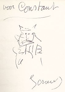 * Exemplaar met handgeschreven, gesigneerde opdracht van de auteur: ‘voor Constant/ Gerard’. Daartussen een origineel tekeningetje door de auteur van een onbestemd figuur. Leuk!