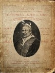 * Kostuumboek, kledingcatalogus, een genre uit vroeger tijd. Maar wel met tachtig handgekleurde litho’s uit de tijd van strijd tussen de Kerkelijke Staat, Garibaldi en koning Victor Emmanuel.