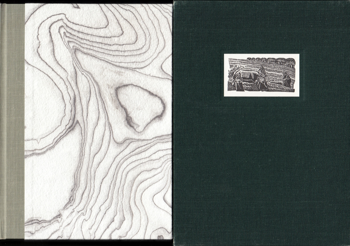 16. (OLD STILE PRESS). CROSSLEY-HOLLAND, Kevin Oenone in January. With illustrations by John Lawrence. Llandogo, Old Stile Press, 1988. Versierd karton (houtsnede op stijfselverfpapier). Met origineel foedraal, geïllustreerd met houtsnede-sierpapier. 24 p. Frontispice en 16 vignetten in houtgravure van John Lawrence. Gedrukt in zwart en oker door Nicolas McDowall op Zerkall Büttenpapier in 350 genummerde exemplaren, alle gesigneerd door dichter en kunstenaar. 1e druk. Prachtexemplaar.