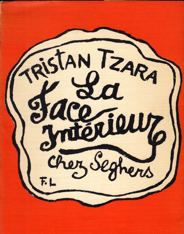 25. TZARA, Tristan La face intérieure. Parijs, Seghers, 1953. Ingenaaid met flappen (ontwerp Fernand Léger). 64 p. Gedrukt op Pannekoek in 750 genummerde exemplaren. 1e druk. Inliggende bespreking. Rugje iets verkleurd, nummertje op binnenflap, wat bruiningssporen op de schutbladen, verder fris-oranje-zwart.