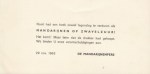 9. HERMANS, W.F. (Gedrukt excuuskaartje van ‘De Mandarijnenpers'[= W.F. Hermans]). Planodrukje op zwaar papier. 9,0 x 18,0 cm. Iemand heeft Hermans’ adres aan de Grote Spilsluizen achterop geschreven.