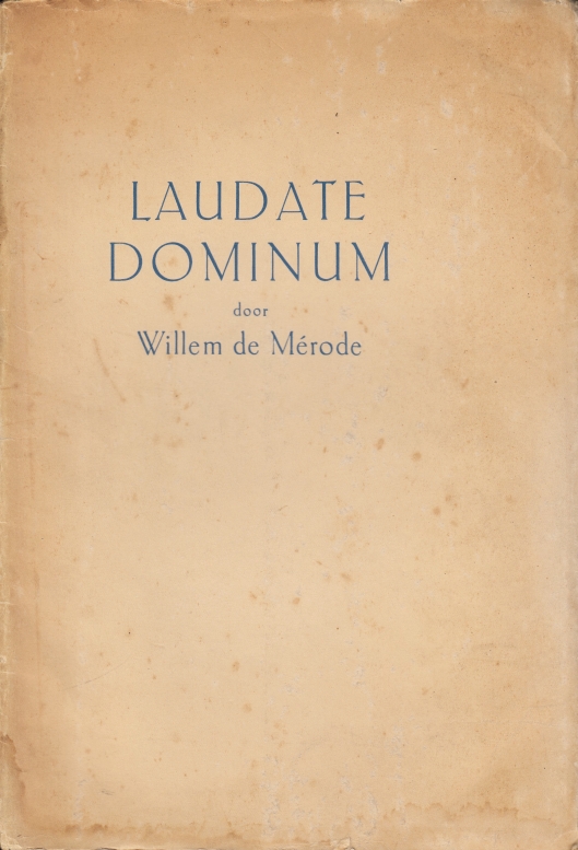 18. MÉRODE, Willem de Laudate dominum. Gedichten. Culemborg, Uitgeverij De Pauw, 1931. Ingenaaid met omslag, bedrukt in blauw. 48 p. Gedrukt door Joh. Enschedé in rood en zwart met de Gothische letter No. 3 op Hollandsch papier van Pannekoek in een oplage van 125 genummerde exemplaren plus 20 Romeins genummerde voor de auteur (dit is nr. 29 van de 125). 1e druk. Omslag wat gevlekt, in de achterkant een scheurtje.