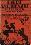 3. DOUGLAS, Norman Birds and Beasts of the Greek Anthology. New York, Jonathan Cape and Harrison Smith, 1929. Linnen met stofomslag. Geïllustreerde bruine schutbladen. xvi, 220 p. Enkele fotografische illustraties. Voorwoord William Alexander Percy. 1e Amerikaanse druk. Stofomslag aan de randen gekreukt en iets versleten. Spoor van verwijderd exlibris.