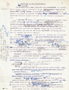 * Typescript and notes for the article’Posthuum interview’, a dialogue between Raymond Brulez and Paul Verlaine, published in Elseviers Weekblad of June 26, 1968 and a year later in the collection Proefneming der eenzaamheid.
