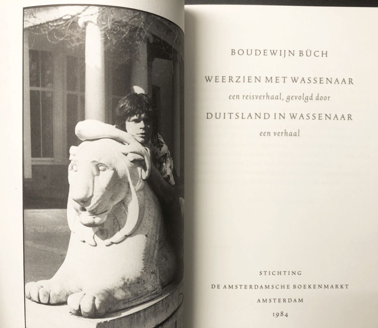 13. BÜCH, Boudewijn Weerzien met Wassenaar. Een reisverhaal, gevolgd door Duitsland in Wassenaar, een verhaal. Amsterdam, Stichting De Amsterdamsche Boekenmarkt, 1984. Ingenaaid met omslag. 48 p. Gedrukt in een oplage van 275 genummerde exemplaren. 1e druk.