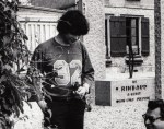* Jacqueline Kranenvitter met haar hond, zittend in het monument dat zij eind jaren zeventig heeft opgericht ter ere van het feit dat Rimbaud in Roche Une Saison en Enfer geschreven had. Mevrouw Kranenvitter woonde op de plek van het buitenhuis van de familie Rimbaud in Roche. In haar huis was een aan Rimbaud gewijd museum gevestigd. Enkele jaren geleden is het pand, dat toen in vervallen staat verkeerde, gekocht door de Amerikaanse zangeres Patti Smith. In mei 1981 bezochten Boudewijn Büch en Klaas Koppe Charleville en Roche, de twee plaatsen in de Franse Ardennen waar Rimbaud gewoond heeft. Dat resulteerde onder meer in een artikel voor Het Parool en een radiouitzending voor de KRO. Deze foto is afkomstig uit de nalatenschap van Boudewijn Büch.