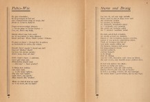 * ‘Ik voel niet meer die vuile drang,/ ik zing niet meer die geile zang!’ (Maar ondertussen). Deze op ’27 Januarie 1931′ gedrukte poëziebundel werd geschreven én uitgegeven door twee jongelingen die naar liefde snakten, de negentienjarige Ceuleers en zijn één jaar oudere kameraad Smekens. ‘Illusiemeisje, kom niet weder’… Uit de bibliotheek van Roel Houwink, zonder zijn naam, maar wel met inliggend gedrukt visitekaartje op naam van Smekens (Familiestraat 7), waaronder Jan Ceuleers zijn naam en adres schreef. Aandoenlijk, met frisse typografie.