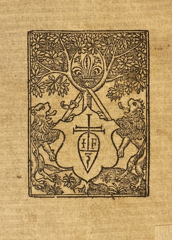 16. EUSEBIUS of CAESAREA Historia ecclesiastica. (Ed. Gaufridus Boussardus). Lyon, Gedrukt door Benedictus Bonnyn voor Jacobus en Franciscus Giunta, 1533. Perkament. (40, 192) p. Titelpagina in renaissancekader, gedrukt in rood en zwart. Uitvoerige tabula (register) aan het begin geplaatst. Veel kleine houtsnede-initialen (criblé – witgestippeld). Uitgeversmerk (met lelie en de letters I en F tussen twee brullende leeuwen) op de laatste pagina. De boekband is grof uit een stuk oud perkament geknipt, waarop nog een oud wapenschild (met Olifantsorde) in blinddruk te zien is. Eigenaarsinscripties van Luigi Chiappelli, een Italiaanse historicus uit het eind van de 19e eeuw, en Jac Bäcker, een priester. Papier wat verbruind en in het begin versleten. Eerste twee bladen missen kleine zijhapjes. Enkele nummers op achterschutblad.