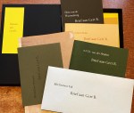 19. HEIJDEN e.a., A.F.Th. van der Brieven aan Gert B. Haarlem, De Korenmaat, 2021. Zes boekjes in kartonnen doosje. 22,5 x 16,5 x 2 cm. Cahiersteek (4 x), garenloos in omslag en plano’s in envelop. Met de hand gezet en gedrukt in een oplage van 120 exemplaren. 1e druk.