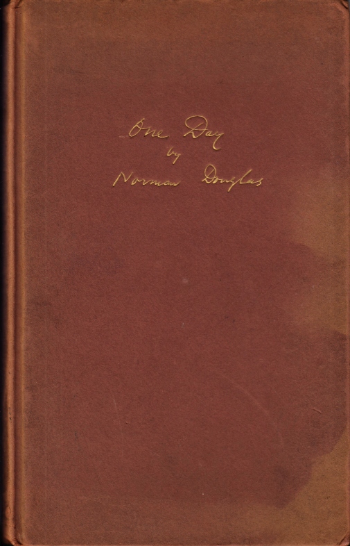 15. DOUGLAS, Norman One Day. Chapelle-Réanville (Eure), The Hours Press, 1929. 26 x 17 cm. Karton. (4), 60 p. Met twee fotografische portretten van de schrijver. Gedrukt in 500 genummerde exemplaren. 1e druk. Band wat verbleekt, maar dit kwetsbare boek is in goede staat.