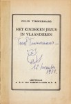 34. TIMMERMANS, Felix Het kindeke Jesus in Vlaanderen. Amsterdam, Van Kampen, z.j. Karton. 192 p. Herdruk. Matig exemplaar: rug beschadigd en behoorlijk geschaafd, scheur in franse titel geplakt met sellotape.