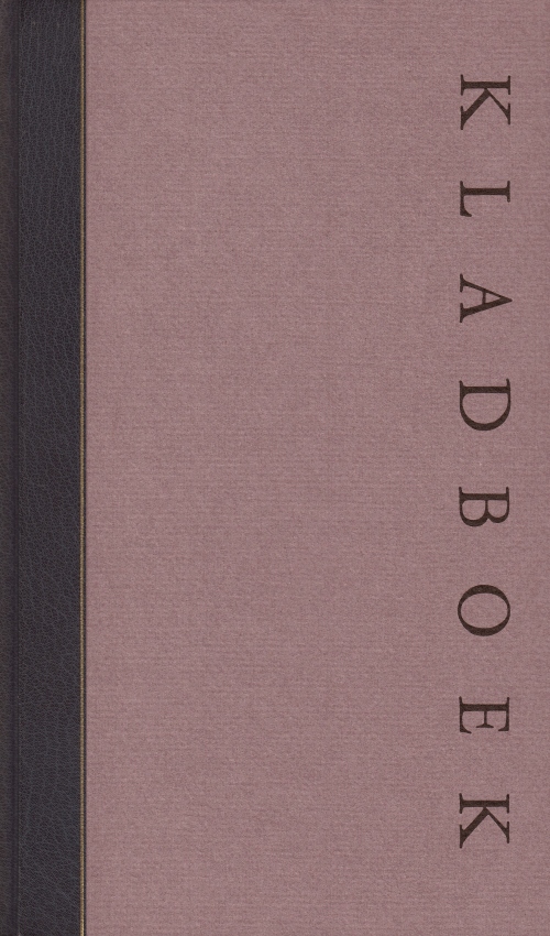 39. VOSKUIL, J.J. Kladboek 1955-1956. [Haarlem], Onder de Korenmaat, (2018). Verguld halfmarokijn in foedraal (Frans den Breejen). (48) p. Met de hand gezet uit de Spectrum en gedrukt in blauw en zwart in een oplage van 80 exemplaren.