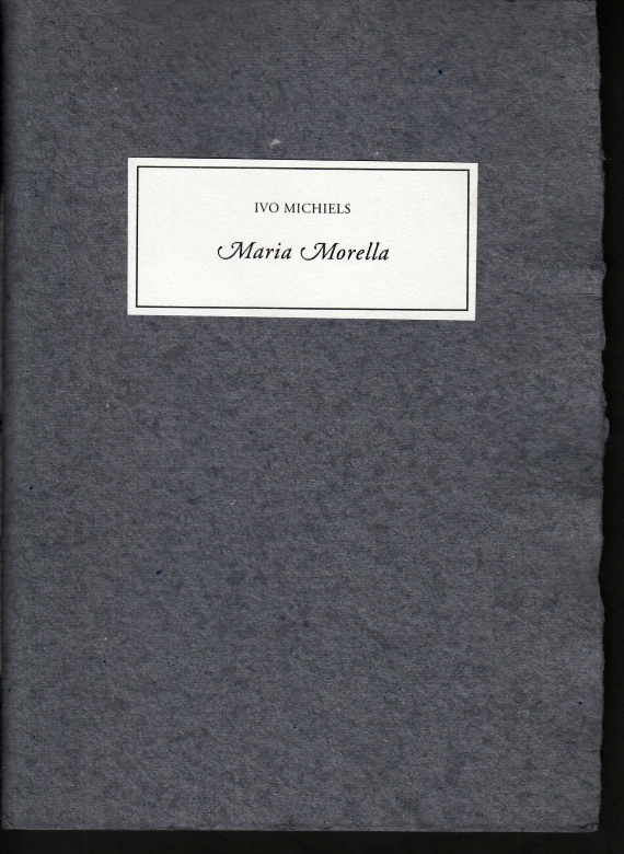 50. MICHIELS, Ivo Maria Morella. (Voorschoten, Jelle L.S. Pijpers), 1990. Ingenaaid. (2), 22 p. Gezet uit de Garamond en gedrukt op Van Gelder Hollands luxe druk in een oplage van 60 genummerde en door de auteur gesigneerde exemplaren. 1e druk. Lijmsporen achterin het boekje.