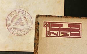 * Het aardige van dit door lezen verwoeste boek met de levensbeschrijvingen van de kunstenaars uit de tijd van de renaissance-architect en -schilder Vasari, zijn de herkomstsporen. Met een oud pretentieloos naamstempeltje van H.P. Berlage Nz., Amsterdam, op het schutblad, en op het volgende blad een opvallend jugendstilstempel van ‘HP.B.N.Z./ ARCH/ A’DAM’ rondom een driehoek, en tenslotte plakte Berlage een nieuwer exlibris op de binnenkant van de boekband, waarin zijn initialen een expressionistisch breed uitgerekte vorm hebben gekregen.