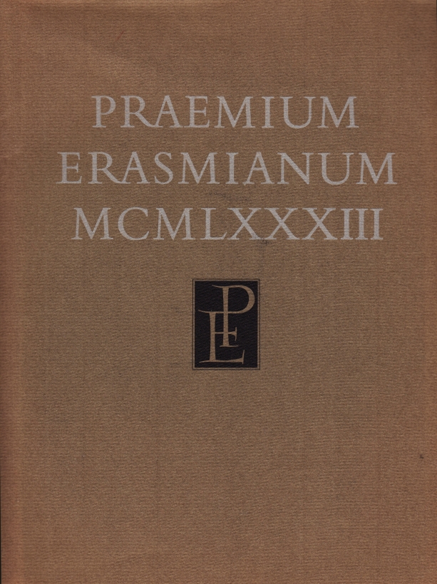 62. (YOURCENAR, Marguerite) Praemium Erasmianum MCMLXXXIII. (Uitreiking van de Erasmusprijs aan Marguerite Yourcenar, 1983). Amsterdam, Stichting Praemium Erasmianum, 1983. 29 x 22 cm. Ingenaaid met flappen van Ingrespapier. 52 p. Met foto’s. In het Frans, Engels en Nederlands. 1e druk. Enkele kleine kreukjes in het omslag.