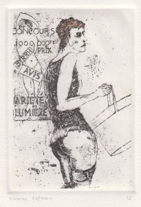 23. HAAN, Jacob Israël de Kijken III. Eene vrouw te Parijs. (Met een verantwoording door Marijke Stapert-Eggen en een originele, gesigneerde ets door Charles Hofman). Amsterdam, De Lange Afstand, 1983. Linnen met stofomslag. (12) p. Met de hand gezet uit de Erasmus en de Hollandse Mediæval en gedrukt in blauw en zwart op Velin d’Arches in een oplage van 40 genummerde exemplaren.