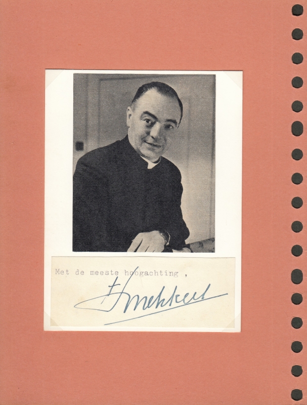 4. (BISSCHOP). ALFRINK, Kard. B.J. Gesigneerde reproductie van een foto. 14 x 10,5. Gesigneerd ‘+ Bern. Kard. Alfrink’.