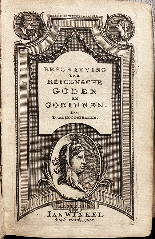 42. HOOGSTRATEN, David van Beschryving der Heidensche Goden en Godinnen, Getogen uit de Fabelschryveren en Oude Dichteren. Met printverbeeldingen gesiert. Amsterdam, Jan Winkel, 1733. 17 x 10 cm. Perkament. (16), 272, (32) p. Gegraveerde titel van P. Goeree. 32 gravures op 16 bladen. Met uitvoerig register achterin. 3e druk. Rug wat gevlekt, band iets grauw. Boekblok raakt wat los van de band.