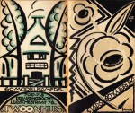 * Prachtig licht serieontwerp met bloemen, achterop een bijpassende advertentie voor ’t Woonhuys, een Amsterdamse woninginrichter, eveneens van Schwarz. Vele fraaie advertenties, o.a. van Joan Collette. Salomon / Mommie Schwarz (1876-1942) was een bekend kunstschilder, getrouwd met de even bekende Else Berg. Ze werden samen in Auschwitz vermoord.